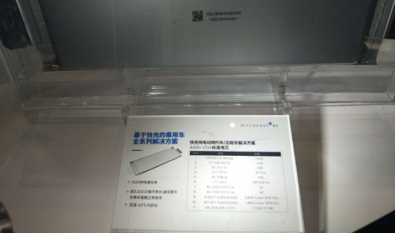 圖為2019上海車展上微宏動力展出的快充純電動乘用車-52Ah VDA產品