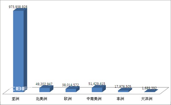 據(jù)中國(guó)化學(xué)與物理電源行業(yè)協(xié)會(huì)發(fā)布的《2013年我國(guó)電池產(chǎn)業(yè)出口數(shù)據(jù)》,2013年我國(guó)鋰離子電池出口量為11.32億只,2012年出口量為11.73億只,同比減少3.5%。2013年我國(guó)鋰離子電池出口額為48億美元,2012年出口額為44.64億美元,同比增長(zhǎng)7.5%。其中,出口亞洲金額同比增長(zhǎng)9%,出口北美金額同比增長(zhǎng)5.9%,出口歐洲金額同比增長(zhǎng)6.3%,出口中南美洲金額同比減少14.6%。