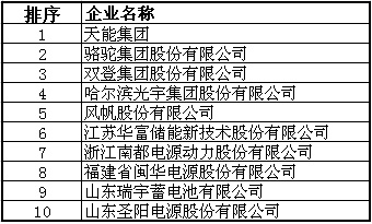 1、2013年度中國鉛蓄電池行業(yè)十強(qiáng)企業(yè)