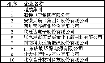 2、2013年度中國新能源電池行業(yè)十強(qiáng)企業(yè)