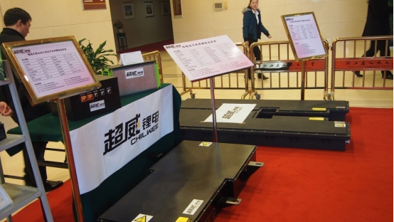 圖為超威展示新型新能源汽車用動力鋰離子電池系列