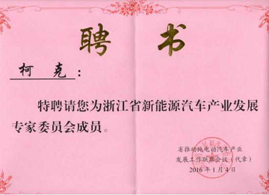 柯克博士被聘為浙江省新能源汽車產(chǎn)業(yè)發(fā)展專家委員會成員