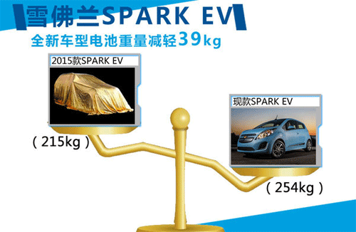 通用汽車將2015款雪佛蘭SPARK EV車型改為自產(chǎn)電池系統(tǒng),由通用位于密歇根州的Brownstown工廠負責生產(chǎn)。此外還將對其生產(chǎn)的電池進行改良,在保持原有性能的同時,由于全新電池組容量從此前的21kWh降低為19kWh,因此整車重量也降低至215kg,比現(xiàn)款車型所采用的A123 Systems公司電池減輕39kg,進一步降低了新車型的耗電量。