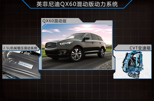 與樓蘭混動版相類似,英菲尼迪QX60混動版動力方面也采用的是最新研發(fā)的2.5升機械增壓混動系統(tǒng),該系統(tǒng)由一臺2.5L機械增壓引擎和一臺電動機組成,最大聯(lián)合功率達到184kw,其中電動機的最大功率為15kw,與之匹配的是CVT變速箱。該混動系統(tǒng)的動力輸出盡管與英菲尼迪目前主要采用的3.5L發(fā)動機有一定距離,但保持了良好的燃油經濟性,并且在智能制動能量回收系統(tǒng)的幫助下,燃油經濟性進一步加強。