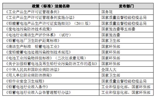 鉛酸蓄電池行業(yè)主要法律法規(guī)