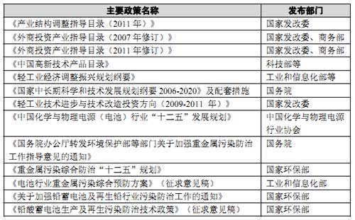 鉛酸蓄電池行業(yè)主要政策