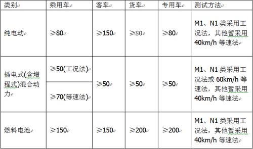 新能源汽車(chē)純電動(dòng)續(xù)駛里程要求