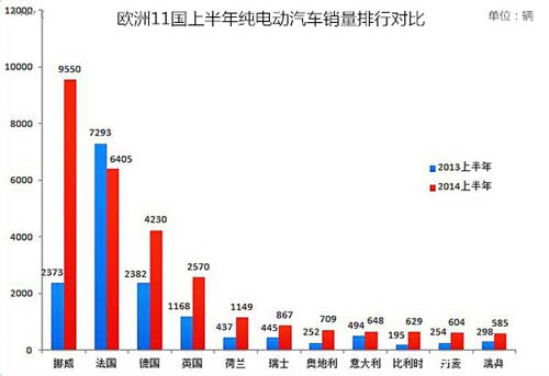 Avere-France公布的這一數據不包括插電式混合動力車的銷量,因此可以說,歐洲純電動汽車的銷量高于美國。2014年上半年,美國純電動汽車的銷量約為25300輛,插電式混合動力車銷量約為30000輛。如果只統(tǒng)計插電式混合動力汽車銷量,美國的銷量遠遠超過歐洲。