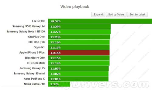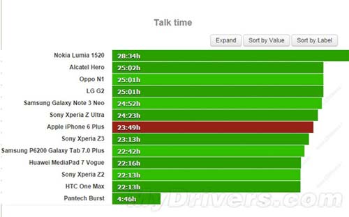另外gsmarena表示在其大屏智能手機續(xù)航數(shù)據(jù)庫中,iPhone 6 Plus的續(xù)航表現(xiàn)可以排名前十。