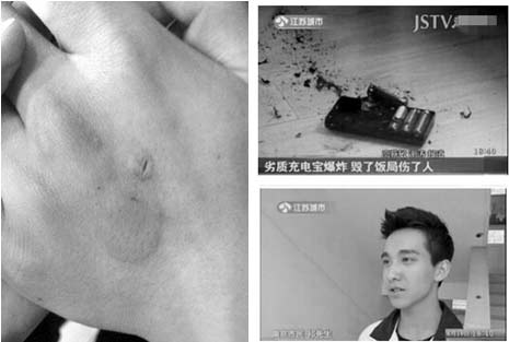 今年6月份,一位祁姓的南京小伙在火鍋店吃飯時,使用充電寶為手機(jī)充電僅不到10分鐘的時間,這款充電寶產(chǎn)品就突然爆炸,并且充電寶的外殼碎片以及電池碎屑也炸的到處都是,而在聚餐的小伙伴當(dāng)中,一位朋友的手背被炸傷,小祁也感到有碎片濺到自己的腿上。就在爆炸發(fā)生后幾秒,充電寶又發(fā)生了二次爆炸。事后小祁回想起這次事故仍心有余悸,并發(fā)微博提醒網(wǎng)友謹(jǐn)慎使用此類產(chǎn)品。