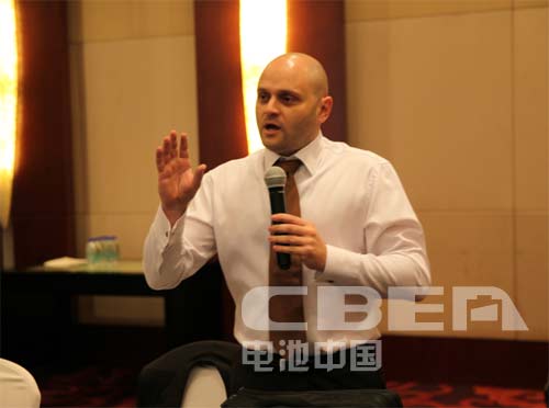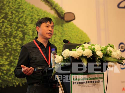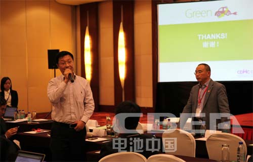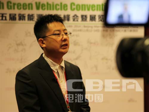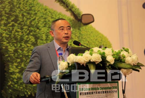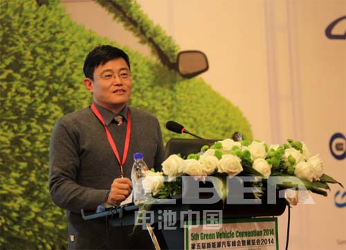 圖為國(guó)家863電動(dòng)車重大專項(xiàng)動(dòng)力電池測(cè)試中心主任王子冬作《圍繞電動(dòng)車的商業(yè)模式開發(fā)動(dòng)力電池系統(tǒng)》的主題演講