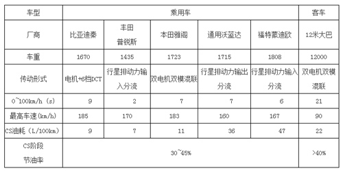 搜集了國內(nèi)外主流乘用車和客車PHEV的技術(shù)參數(shù),如表2所示,可以看出各主要廠商PHEV在CS模式的節(jié)油率均大于30%,PHEV客車節(jié)油率高達(dá)40%以上,即表明不充電狀態(tài)下節(jié)油率仍然較高。