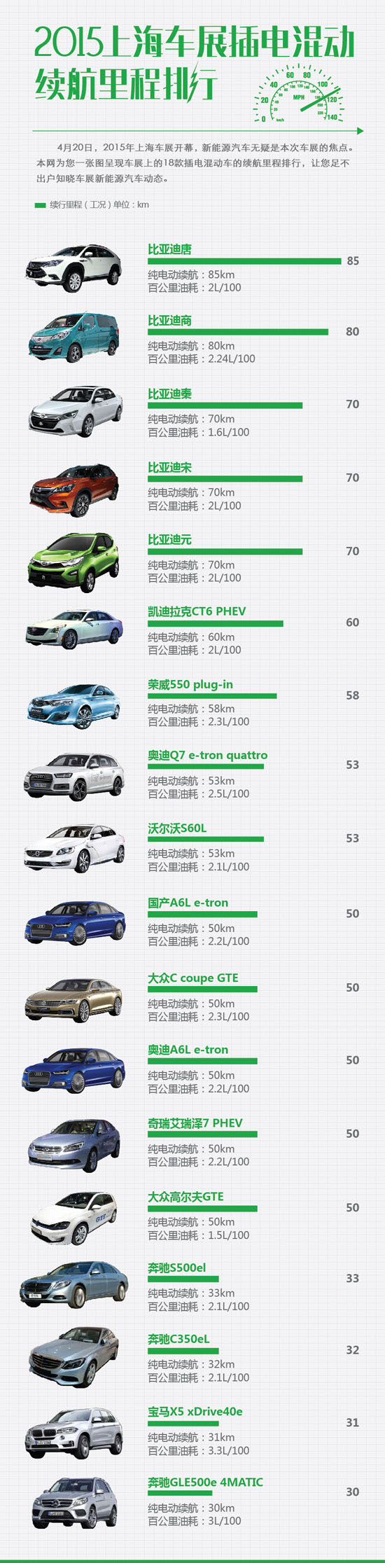 2015上海車(chē)展插電混動(dòng)續(xù)航里程排行榜