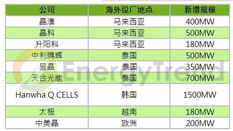 根據(jù)EnergyTrend的調(diào)查研究,許多廠商今年上半年已紛紛宣布將在東南亞或韓國等地新設(shè)產(chǎn)能,在不計印度新增產(chǎn)能的情況下,2015年年底前,僅此亞太區(qū)域的電池產(chǎn)能估計將達(dá)4.5GW,只要年底前能順利開出產(chǎn)能,就足夠供應(yīng)美國所需。因此,在這些產(chǎn)能開出后,海外電池的供需可望達(dá)到較平衡的狀態(tài),使得中國、臺灣生產(chǎn)的電池價格面臨下跌壓力。