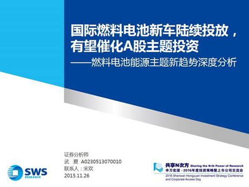近日,券商申萬宏源發(fā)布《燃料電池能源主題新趨勢深度分析》報告,對燃料電池能源產(chǎn)業(yè)做出分析,認(rèn)為國際燃料電池新車陸續(xù)投放,有望催化A股主題投資。