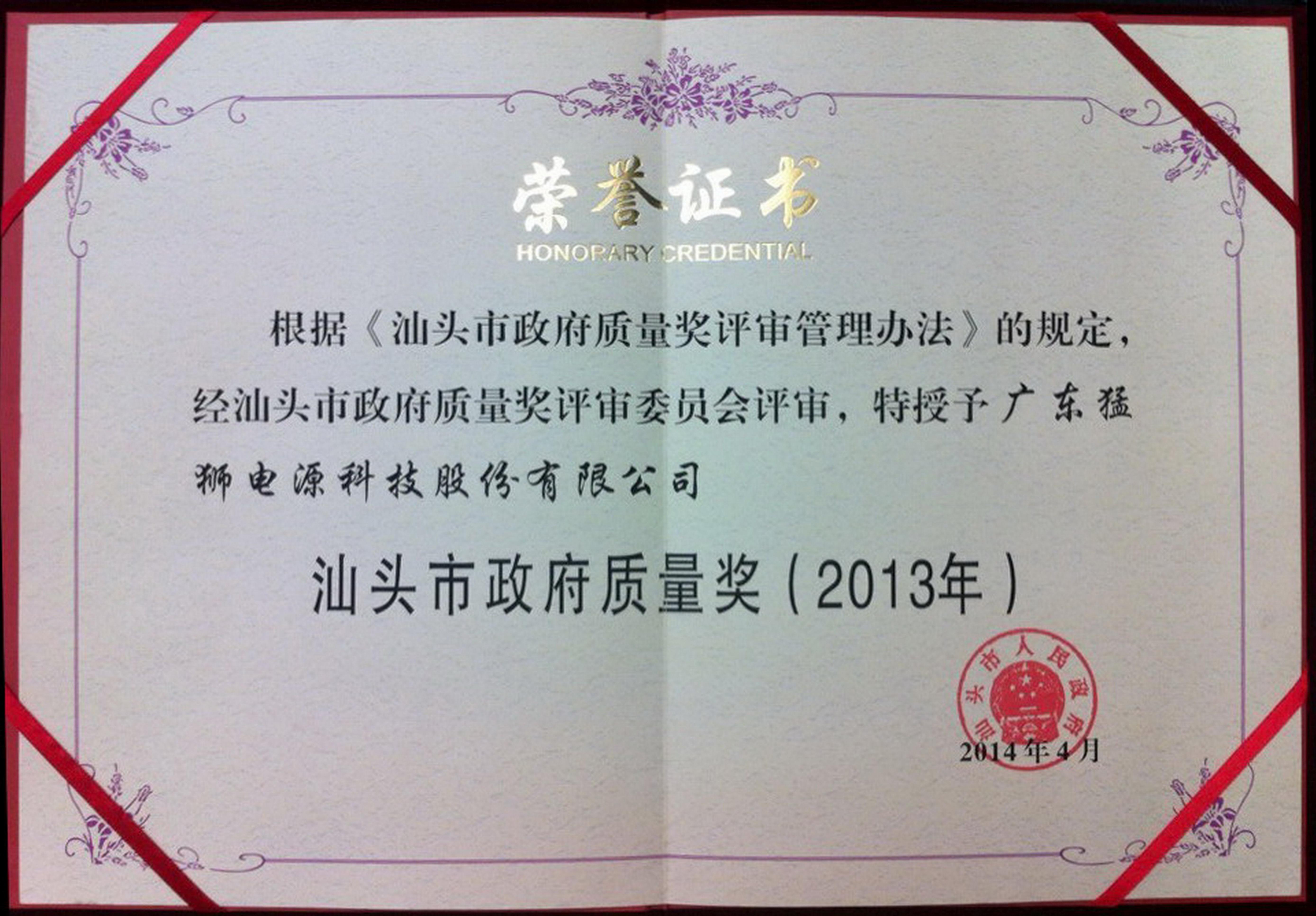 日前,首屆“汕頭市政府質(zhì)量表彰會議”在廣東汕頭舉行。廣東猛獅電源科技股份有限公司(以下簡稱猛獅科技)等三家企業(yè)榮獲首屆“汕頭市政府質(zhì)量獎”。