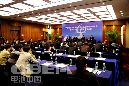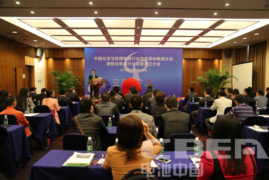 圖為中國化學(xué)與物理電源行業(yè)協(xié)會移動電源分會暨移動電源行業(yè)聯(lián)盟成立大會現(xiàn)場