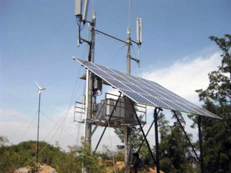 圖為配備了儲能電池的風(fēng)光互補(bǔ)通信基站