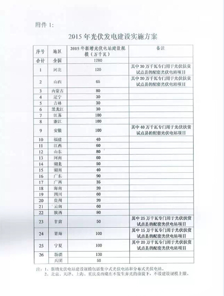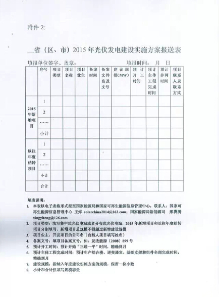 [摘要]日前,國家能源局正式下發(fā)國能新能〔2015〕73號文件,發(fā)布《2015年光伏發(fā)電建設(shè)實施方案》。