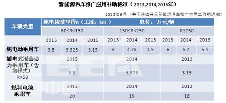 目前執(zhí)行的新能源汽車推廣應(yīng)用補(bǔ)助標(biāo)準(zhǔn)是參考《關(guān)于繼續(xù)開(kāi)展新能源汽車推廣應(yīng)用工作的通知》制定的,并且實(shí)現(xiàn)退坡機(jī)制,即2014年在2013年標(biāo)準(zhǔn)基礎(chǔ)上下降5%,2015年在2013年標(biāo)準(zhǔn)基礎(chǔ)上下降10%;2015年底補(bǔ)貼政策到期后,中央財(cái)政將繼續(xù)實(shí)施補(bǔ)貼政策。