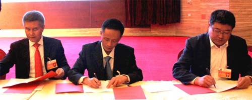 圖:蔣衛(wèi)平(左)、戴揚(yáng)(中)、劉玉軍(右)簽約現(xiàn)場(chǎng)
