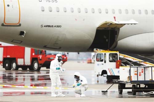 14時39分,市環(huán)保局輻射應(yīng)急處置人員和市輻射環(huán)境監(jiān)督管理站應(yīng)急救援隊伍到達現(xiàn)場,分別排查機組和地面人員,并探明污染區(qū)域和范圍,還專門對飛機周圍更大范圍進行場地輻射監(jiān)測和空氣污染監(jiān)測。