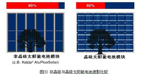 采用在太陽光線受到遮蔽時仍可提供較高的光電轉(zhuǎn)換率——旁路二極管技術(shù)。當(dāng)太陽能板部分被周邊建筑物或屋頂上方對象遮擋時,由于旁路二極管的連通,僅僅只是陰影面覆蓋的太陽能板部分不參與工作,其余部分仍正常工作,也即被陰影遮蔽的這組板仍能產(chǎn)生電流。而多晶硅板一旦有陰影遮蔽,整組太陽能板將退出工作狀態(tài)。