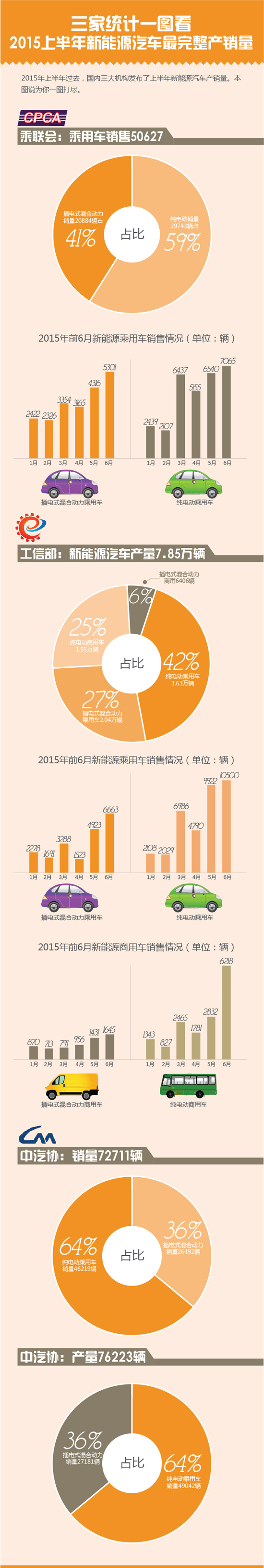 [摘要]2015年上半年過(guò)去,國(guó)內(nèi)三大機(jī)構(gòu)發(fā)布了上半年新能源汽車產(chǎn)銷量。本圖說(shuō)為你一圖打盡。