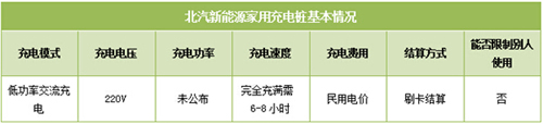 購(gòu)買北汽新能源車型可隨車贈(zèng)送一個(gè)慢充樁,該充電樁使用的是220V電壓,充滿一輛車需要6-8小時(shí)。晚上充電白天使用,大多數(shù)情況不會(huì)耽誤車主用車。充電費(fèi)用方面,采用的是民用電價(jià),結(jié)算方式為每次刷專用電卡結(jié)算。