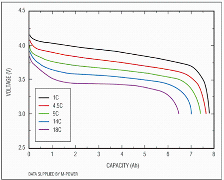 從典型放電曲線圖上可以看出,電池放電電流越大,放電容量越小,電壓下降更快。