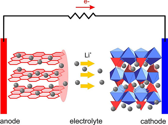剩下的同學(xué)們,是不是覺得這圖很熟悉?其實(shí)還是鋰電池的示意圖,只是這回陰極陽(yáng)極的表面結(jié)構(gòu)都顯示出來了。大家有沒有覺得它們都很整齊規(guī)矩?。?/p>