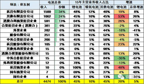 鋰電池行業(yè)的高增長主要是其他有限責任公司和港臺企業(yè)的表現(xiàn)很強,收入高增長。而國企性質(zhì)的企業(yè)在新能源產(chǎn)業(yè)是較差的,沒有有效的產(chǎn)品投入。未來國企大汽車集團可能有錢投資,但與民營相對的體制差距太大,估計也是很難發(fā)展。